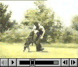 Thanks to Now4.com, a guide to QuickTimeTM stuff on the web, for featuring Jake's video! (Owners Dan and Kathi Wilson, handler Kathi Wilson, decoy Steve Beal 6/97) |